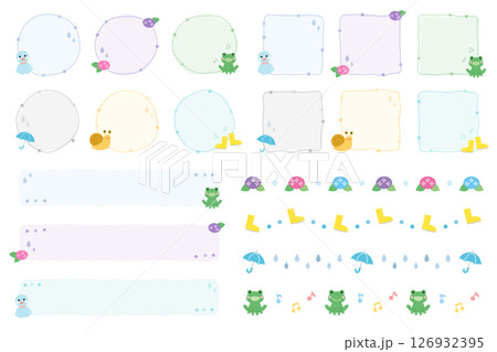 梅雨のフレームとラインセット イラスト