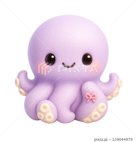 にっこり笑顔とピンクのリボンが可愛い紫色のタコのキャラクターイラスト