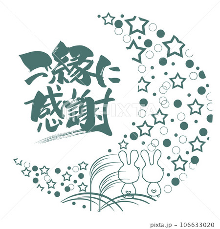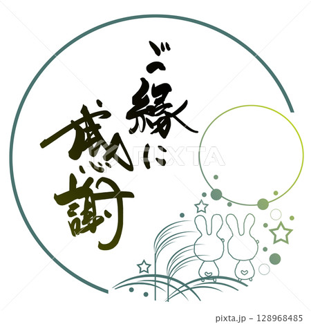 筆文字 ご縁に感謝(お月見をするウサギのイラスト) .n