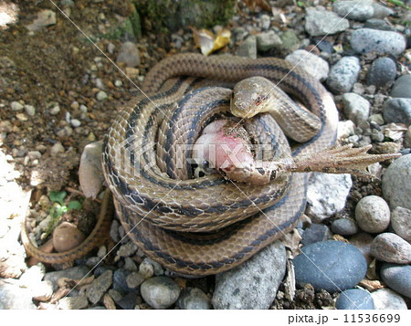 獲物を飲み込もうとするアオダイショウ(埼玉県寄居町)
