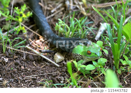 ヘビがカエルをゲット