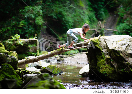 箱根町 須雲川自然探勝歩道丸太橋と須雲川