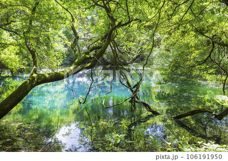 山形遊佐の初夏 神秘の池 新緑の丸池様