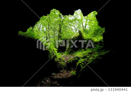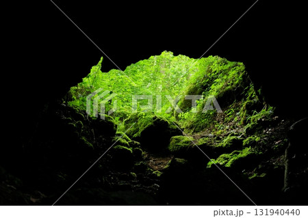 富士山南麓丸火自然公園の溶岩洞穴内から見た外の景色 Ver2