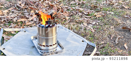 ソロストーブで暖をとる アウトドア