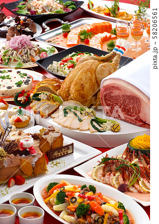 クリスマス パーティー ディナー 食品 料理 ブッフェ ローストチキン ステーキ デザート