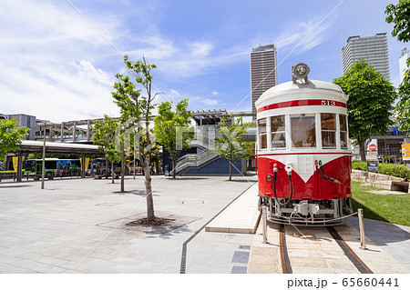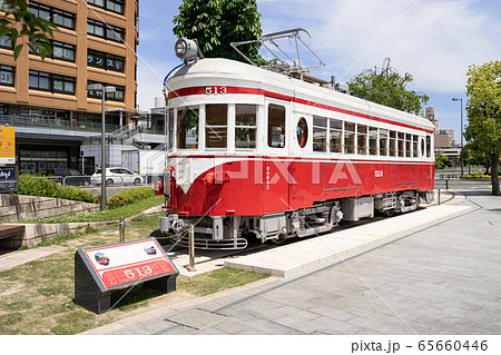 岐阜駅 北口駅前広場 名鉄モ510形(丸窓電車)モ513号の展示