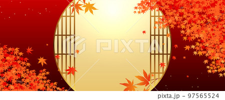 丸窓と紅葉のイラストの背景素材