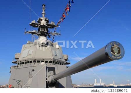 護衛艦あがのの主砲塔と艦橋 護衛艦の一般公開