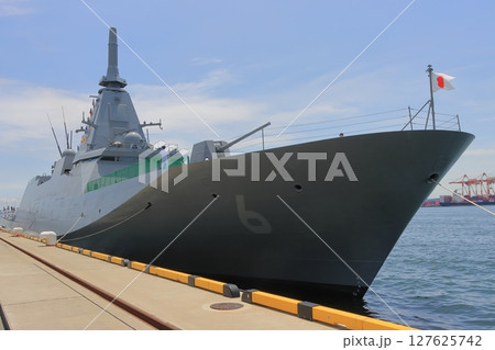東京国際ターミナルに停泊するもがみ型護衛艦