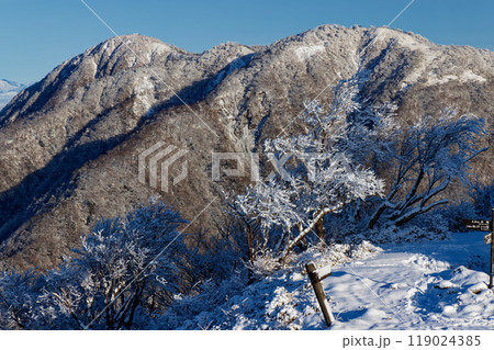 雪の谷川岳・山頂付近より望む稜線の山並み(ぐんま県境稜線トレイル)
