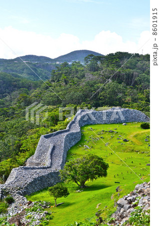 12月沖縄・今帰仁 今帰仁城跡(今帰仁グスク)の全景と海