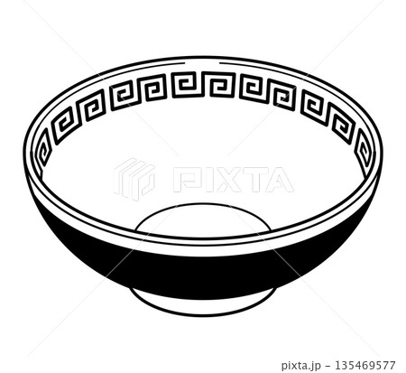 らーめん鉢と箸の手描き筆絵風イラスト