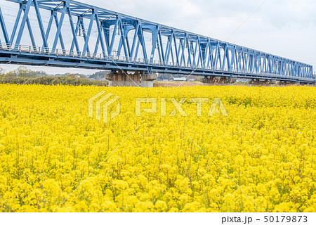 久慈川河口付近の菜の花畑と鉄橋