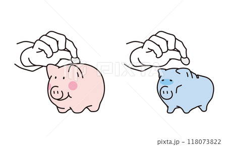 豚の貯金箱にコインを入れるシンプルイラスト