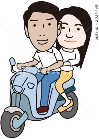 スクーターに乗るカップル(パス切り済み)