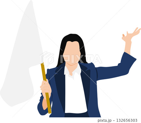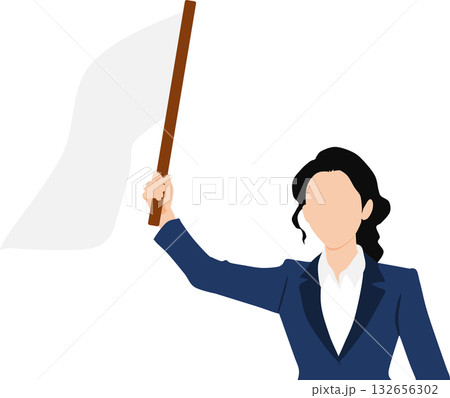 白旗を掲げるビジネスウーマンのイラスト
