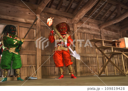 書写山円教寺 鬼追い会式 白山権現社舞殿で邪気を追い払う鬼の舞
