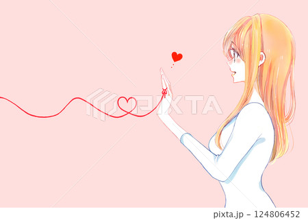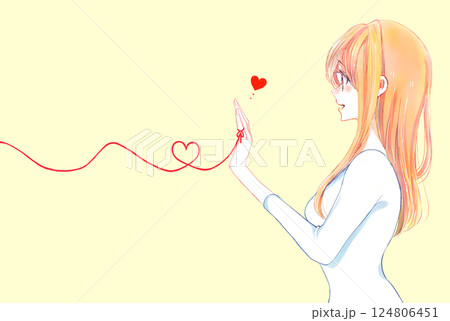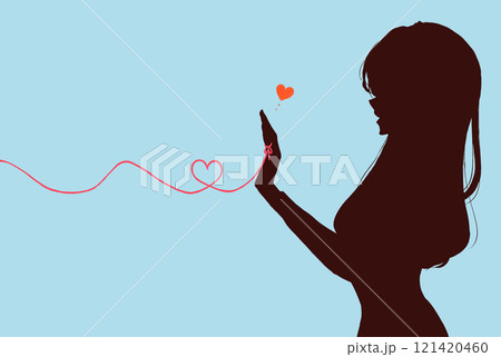 運命の赤い糸を結んだ女性 横側 シルエット 夏