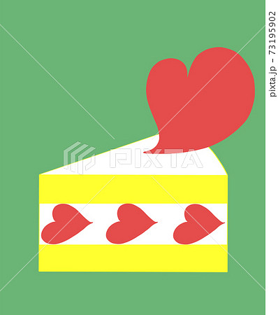 グリーンの背景 赤いハートがのったショートケーキ