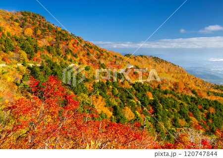 福島県福島市 高湯温泉と土湯峠を結ぶ磐梯吾妻スカイラインの乙女沢付近の鮮やかな紅葉