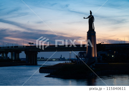 旧堺港 龍女神像 寄り 夕景 遅い時間帯