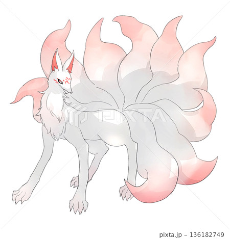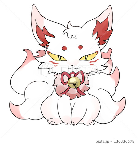 九尾の白狐のキャラクターのイラスト