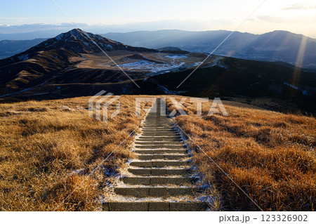 草千里ヶ浜と烏帽子岳 冬の阿蘇の風景