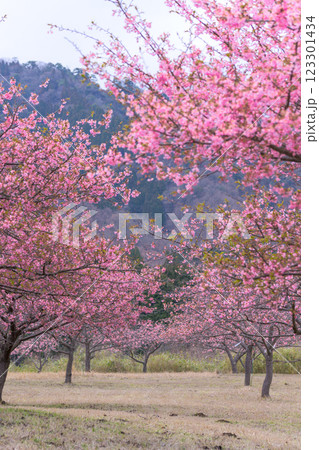 大自然を背景に映える河津桜風景(南阿蘇)熊本県野外劇場アスペクタ
