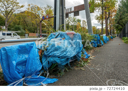 東京都渋谷区美竹公園に設置されたホームレスのテント