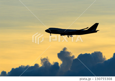 飛行機 背景 さまざまな表情の雲 空 太陽 夕空 朝焼け