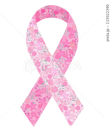 やさしい水彩花柄のピンクリボン