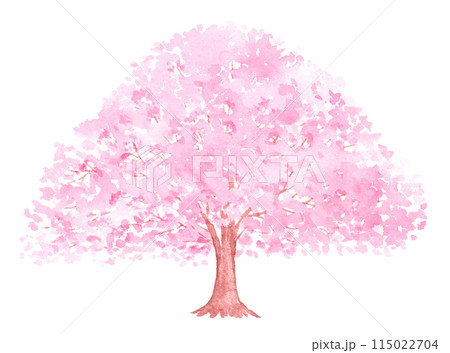 水彩絵の具で描いたピンクの木