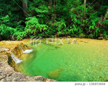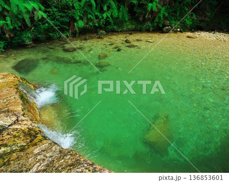 夏の愛知県新城市 深緑に囲まれ清流の乳岩川
