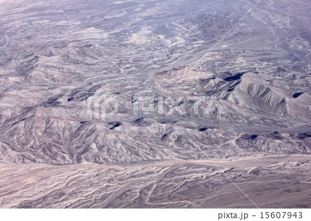 南米チリのアンデス山脈、乾燥した砂の大地に刻まれた模様