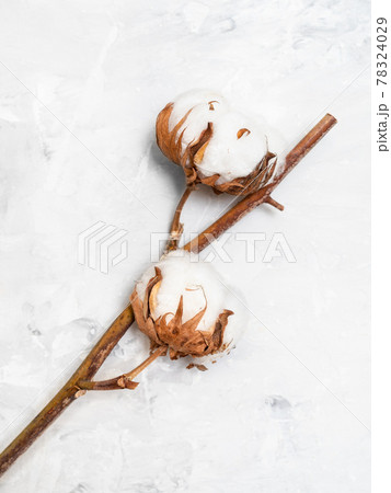 natural branch of dried cotton plant on gray