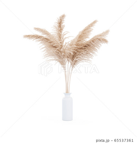 Reed grass bunch on white background, pampas grass minimal flat lay, copy space
