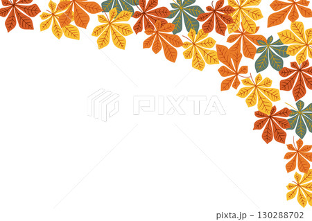 Autumn banner with colorful chestnut leaves in orange, yellow and green tones on white background
