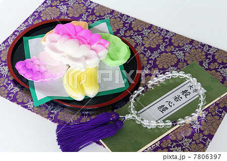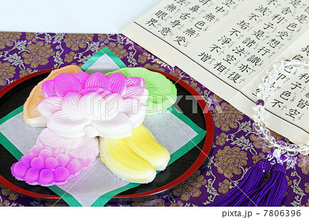 高坏に置かれたお供え用の干菓子 お供えのイメージ2