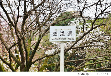 東京案内桜スポット・道灌濠の桜と案内板・横位置