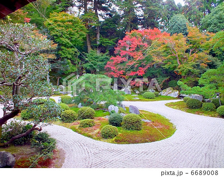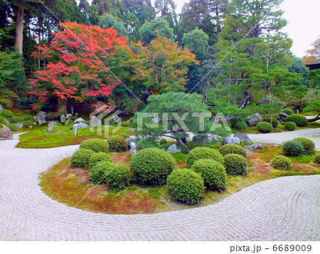 滋賀県 紅葉の大池寺 枯山水の蓬莱庭園