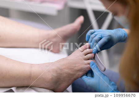 Work out the toenail plate with a disposable file.