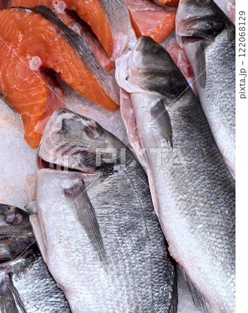 Freshly caught fish on display at a vibrant market near the coast