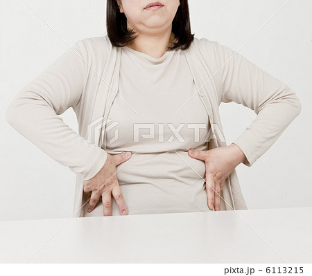 ぽっこりお腹をつまむ女性 身体のみ