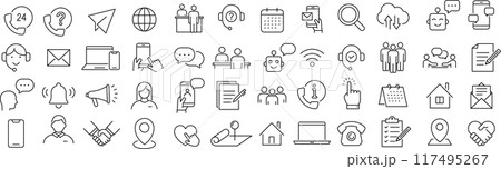 ベクターでモノクロの問い合わせに関する線画アイコンセット