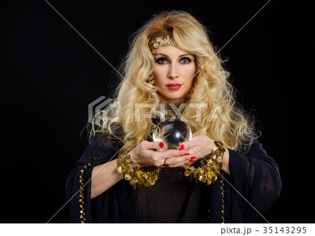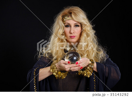 Woman fortune teller with crystal ball portrait