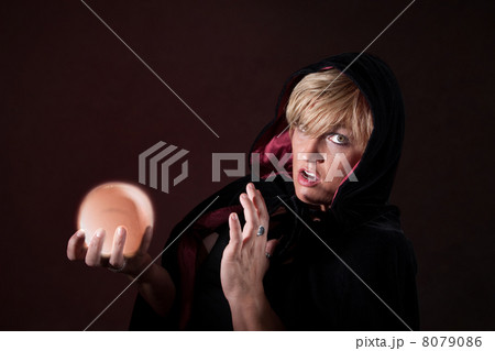 Soothsayer during esoteric session with Crystal ball