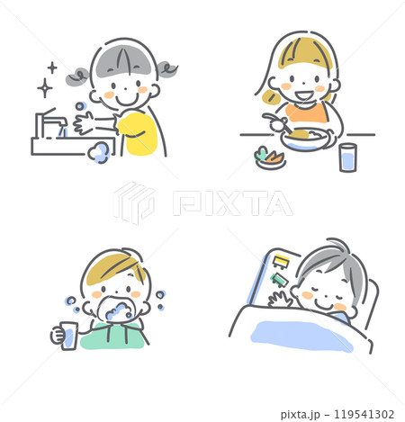 こどもの感染症予防対策セット カラフルでかわいい線画イラスト