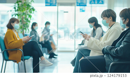 病院の待合室で順番を待つ人々