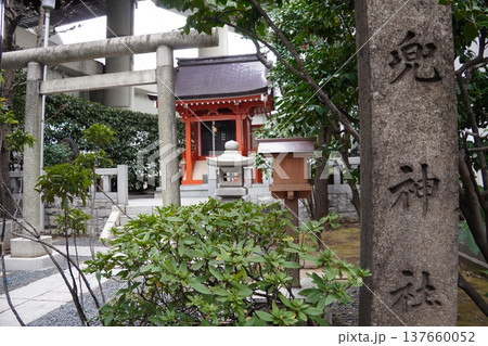 春の島根県松江市の加賀神社(かかじんじゃ)の境内にある神社(恵比寿神社)